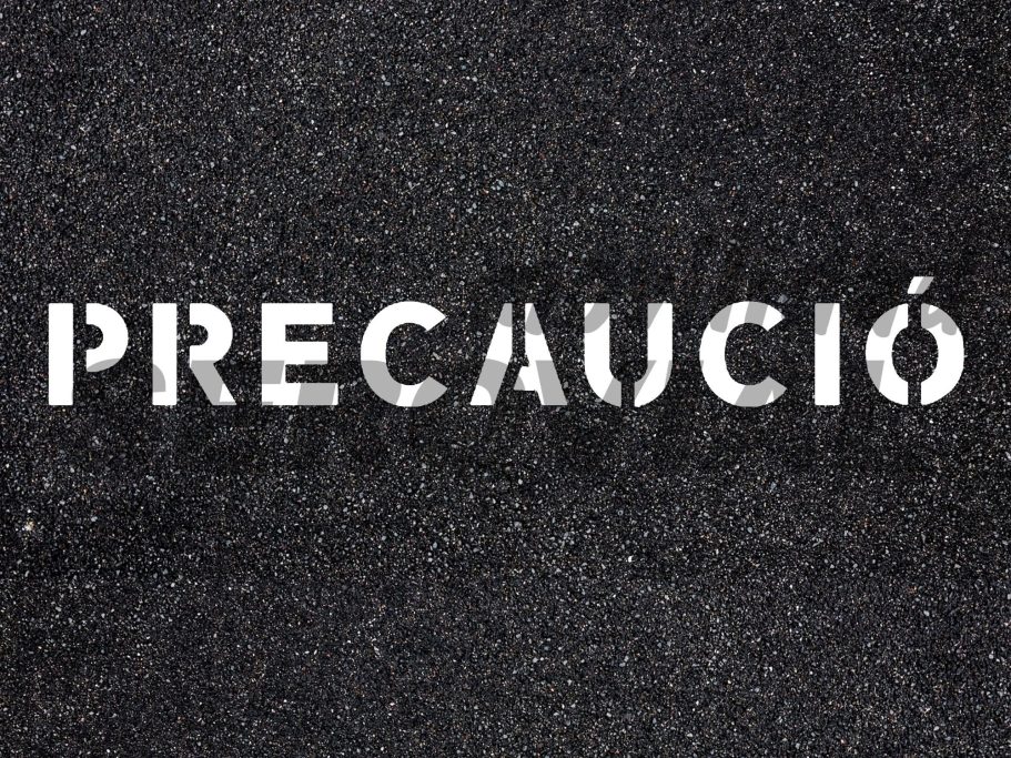 Plantilla de señalización horizontal para marcación de palabra "PRECAUCIÓ/N" en suelo. Reutilizable y compatible con todo tipo de pinturas y suelos. Se fabrican en planchas (acero o aluminio) o en PVC. Dimensiones y pictogramas según normativa.