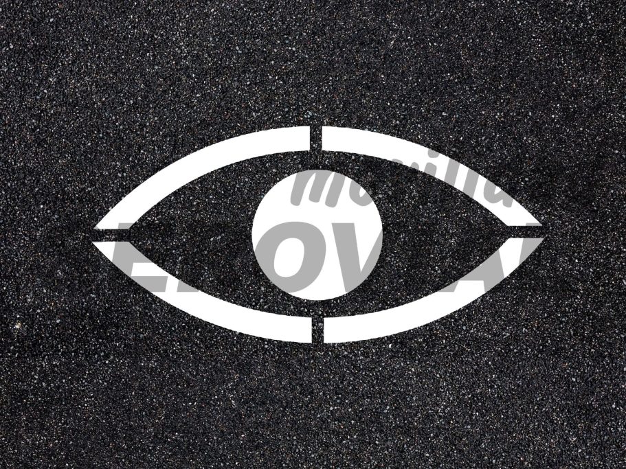 Plantilla de señalización horizontal para marcación de símbolo "OJO" en suelo. Reutilizable y compatible con todo tipo de pinturas y suelos. Se fabrican en planchas (acero o aluminio) o en PVC. Dimensiones y pictogramas según normativa.