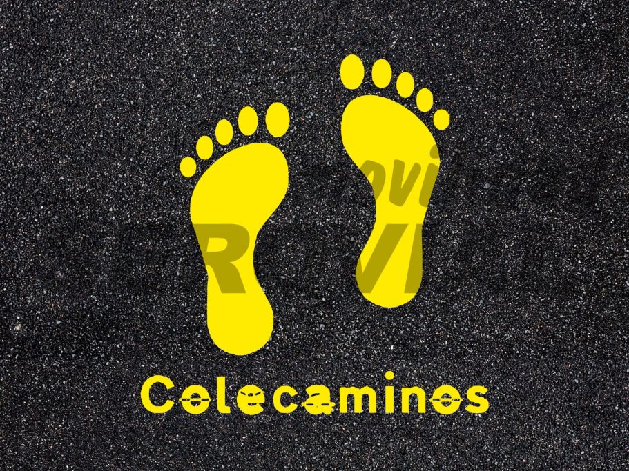 Plantilla de señalización horizontal para marcación de dibujo "HUELLAS AL COLE ANDANDO" en suelo. Reutilizable y compatible con todo tipo de pinturas y suelos. Se fabrican en planchas (acero o aluminio) o en PVC. Dimensiones y pictogramas según normativa.
