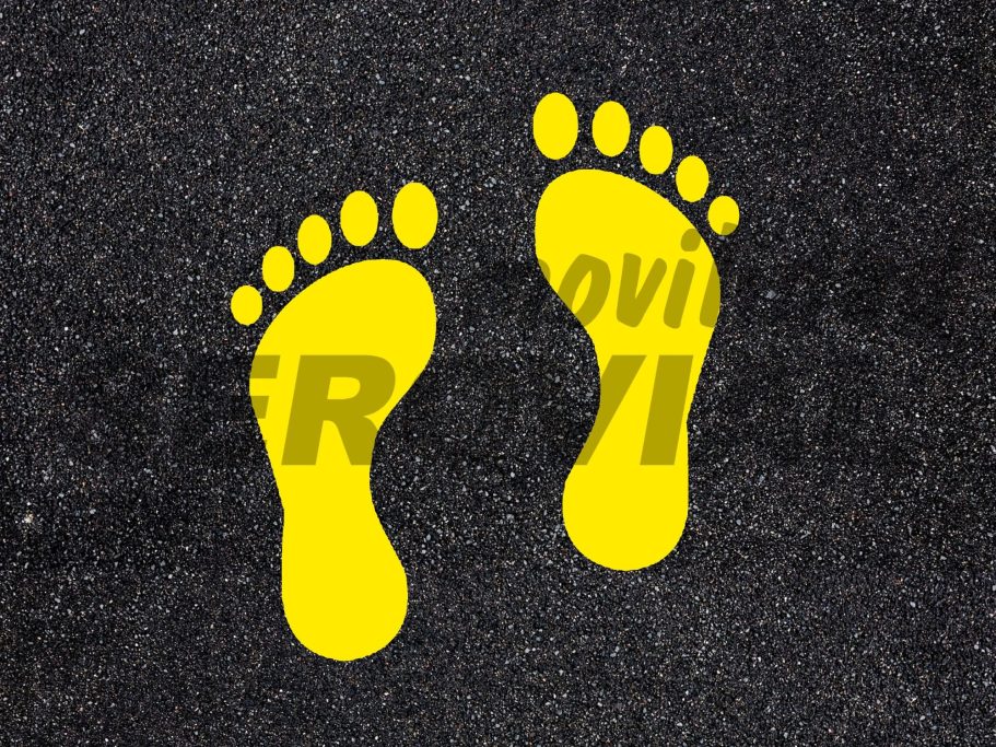 Plantilla de señalización horizontal para marcación de símbolo "HUELLAS" en suelo. Reutilizable y compatible con todo tipo de pinturas y suelos. Se fabrican en planchas (acero o aluminio) o en PVC. Dimensiones y pictogramas según normativa.