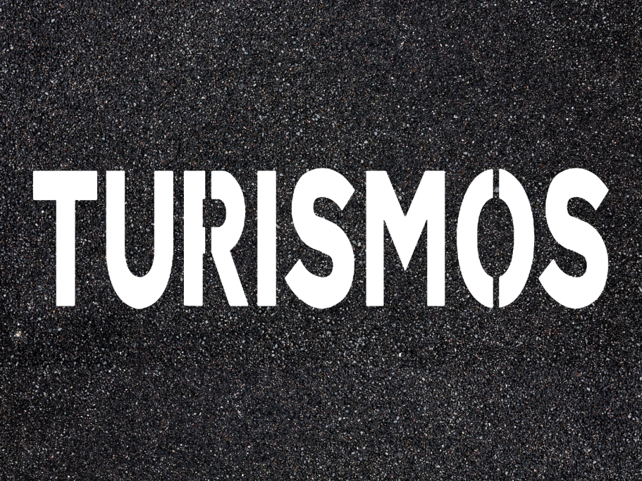 Plantilla de señalización horizontal para marcación de palabra "TURISMOS" en suelo. Reutilizable y compatible con todo tipo de pinturas y suelos. Se fabrican en planchas (acero o aluminio) o en PVC. Dimensiones y pictogramas según normativa.